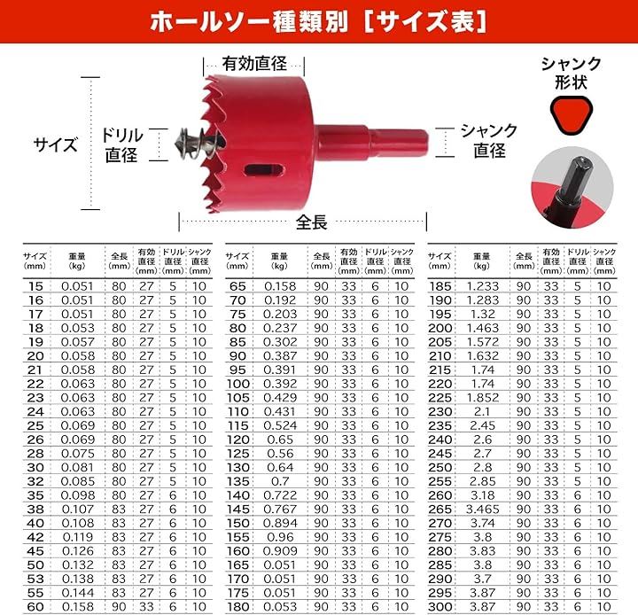 「用途」石膏ボード・プラスチック・木材・合板・薄鉄板・薄ステンレス板・薄アルミ板などの穴あけ作業に使われます。