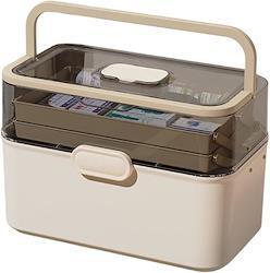 First aid kit, medicine box, medicine case, medicine holder, 3-tier toolbox, storage box, large capacity, stylish, transparent, with handle
