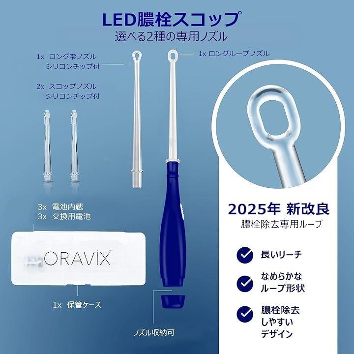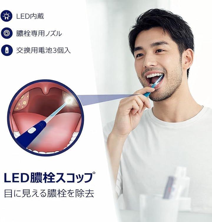 LED搭載: LEDで見えにくい膿栓の大きさや場所を確認できます。