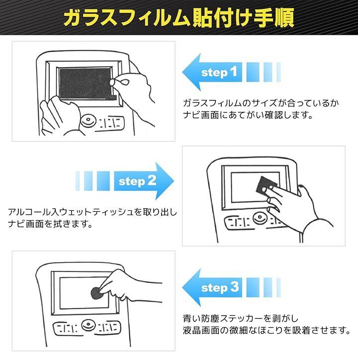 ナビゲーション 液晶パネル ガラスフィルム アクセサリー 「画質鮮明」光透過率99%以上で透明感抜群、反射や映り込みを軽減 鮮明な画質を実現しました 「耐久強化素材」ナイフより硬い硬度9H強化ガラスは傷がつきにくく高い耐久性があります。