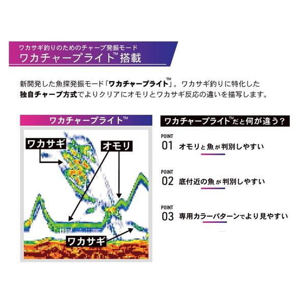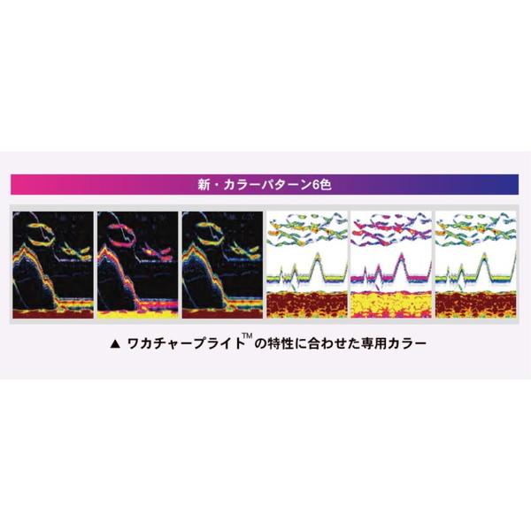 ワカサギ釣り専用振動子TD08がセットになったPS-711CNワカサギパックはワカサギモードを搭載。これだけでワカサギ仕様に切り替わり!ワカサギ釣りに特化した複数の魚探機能が使用可能になるモードです。専用開発した魚探発振モード「ワカチャープライト(TM)」は、TD08の性能を最大限に引き出す独自チャープ方式により、今まで表現しづらかったオモリとの反応の違いや、底付近に潜む小さなワカサギの反応まで鮮明に描写。厳しいコンディションでもターゲットを逃しません。またワカチャープライト(TM)の特性に合わせた専用カラーを新開発。ボトム周辺での微細な反応差やワカサギ反応の強弱が視覚的により分かりやすくなりました。釣果を追求する大画面7型ワイド液晶は、従来の5型ワイドモデルと比較すると画面はより広くより鮮明に、微細な反応も表現します。 タイプ:7型ワイドカラー液晶 表示画面:縦型 電源電圧:DC11~14V 消費電力:約11W 約0.9A/12V 重量:約1kg 周波数:150kHz~300kHz 表示レンジ:- セット内容:PS-711CN本体、TD08 振動子、DC06 電源コード(2m)、ハードカバー、自立ベース ※実物と色が違って見える場合があります。あらかじめご了承下さい。