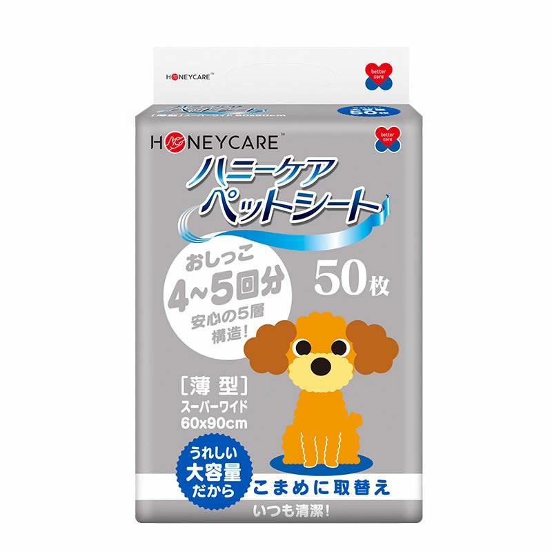 【商品名/型番】ハニーケアペットシート レギュラー(薄型200枚) / 4580639722000ハニーケアペットシート ワイド(薄型100枚) / 4580639721003ハニーケアペットシート スーパーワイド(薄型50枚) / 4580639720501