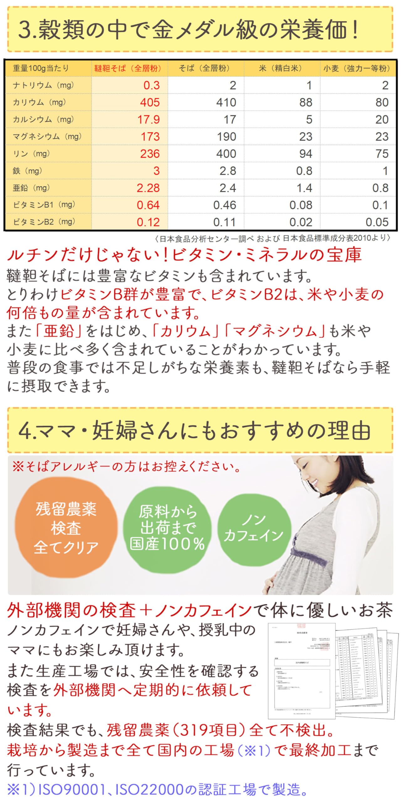 原料:ダッタンそば(国産100%※北海道産100%、もしくは、新潟、長野、大分のいずれか。農産物のため時季によって変動。内容量:1kg タイプ:バラ(粒) とても香ばしくて飲みやすいです。※自然原料を昔ながらの釜で炒めるため、焙煎の具合に幅があります。自然の原料100%の為、色の濃さや味にバラつきがございます。製造メーカーにて商品規格の基準検査をし、クリアした材料を使用しておりますので予めご了承下さい。