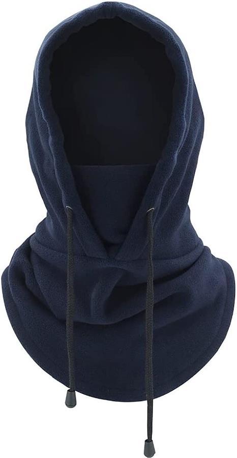 -10℃の極寒地でも高密度なフリース素材が耳まで覆い、フードの紐をキュッと絞れば防風対策もばっちり。