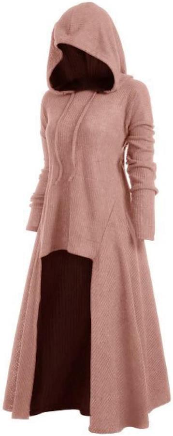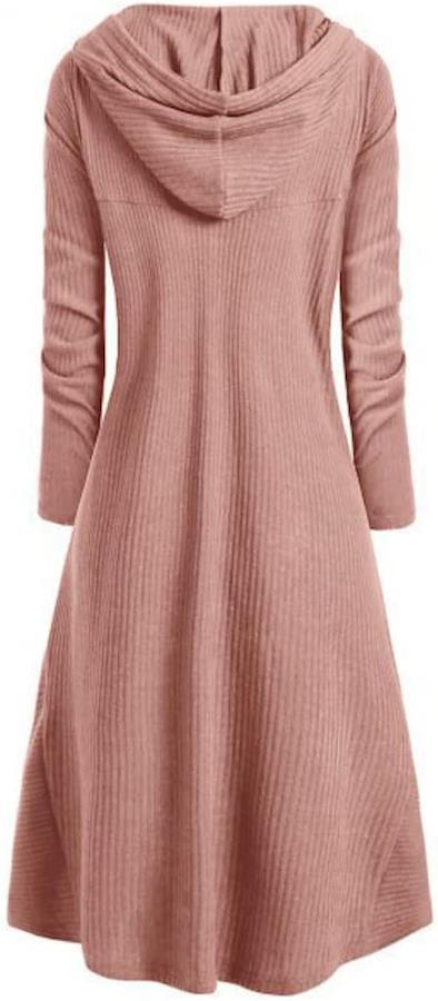 フード付きでお洒落なリブニットワンピース。