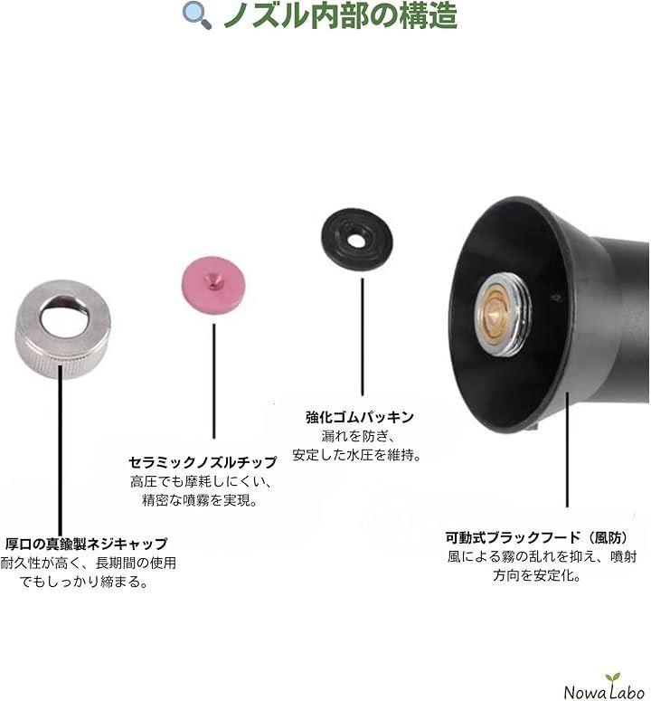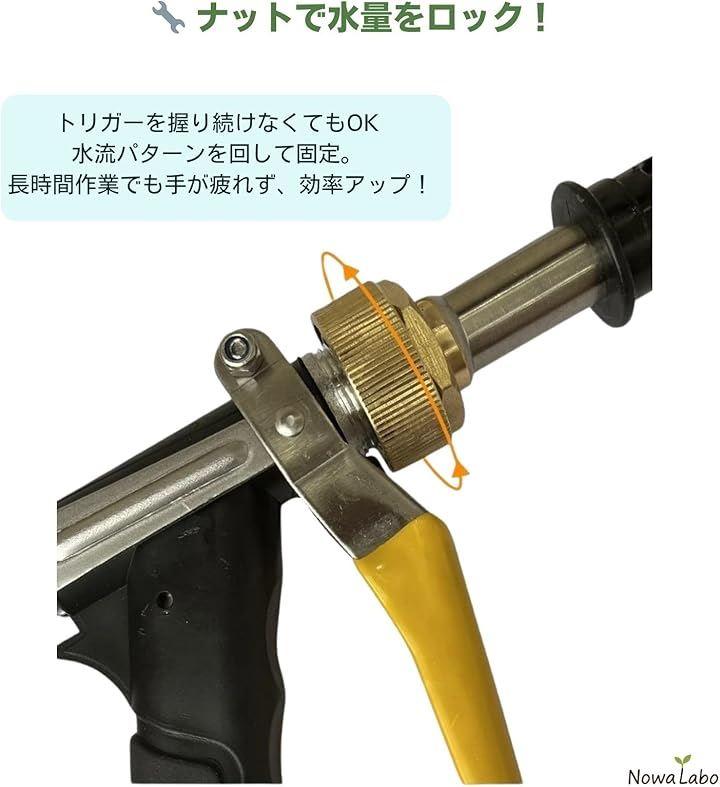 「手元のコックで簡単水量調整」 ノズルには開閉用のコックを装備。