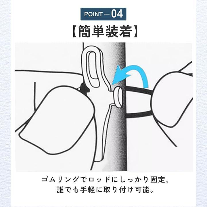 「簡単装着」ゴムリングでロッドにしっかり固定、誰でも手軽に取り付け可能。