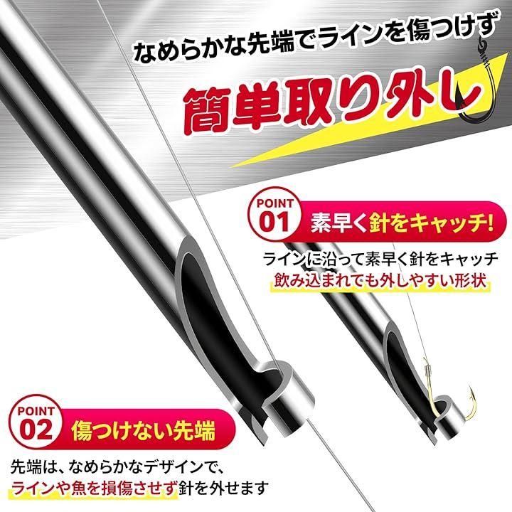 先端はなめらかなデザインでラインや魚を損傷させず、針を外せます。