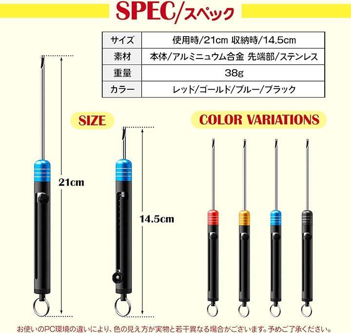 アルミニウム合金製の本体とステンレス製の先端部で小型・軽量・高強度でサビにくい。