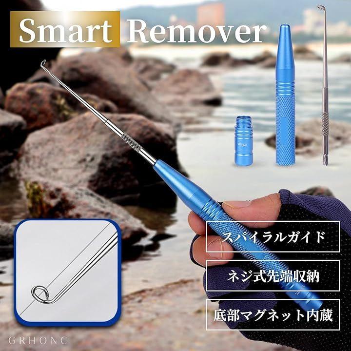 「年間3,300個出荷。先端収納式で安全携帯できるフックリムーバー」スパイラルラインガイド構造により、釣り糸をなぞるだけで魚の口の奥にある針まで到達。