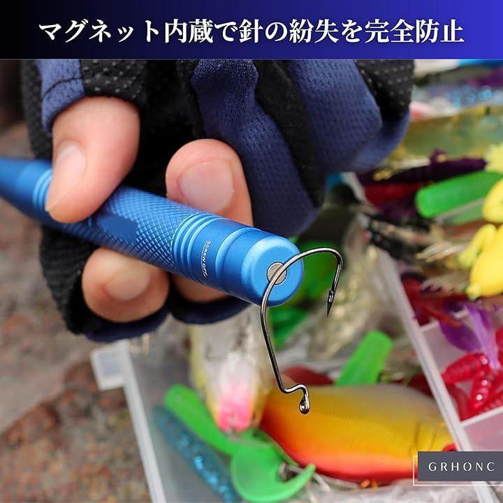 「底部強力マグネット内蔵で針の紛失を防止」持ち手底部に強力マグネットを搭載し、外した針を一時的に吸着させたり、タックルボックス内で散らばった予備の針を効率よくピックアップできます。