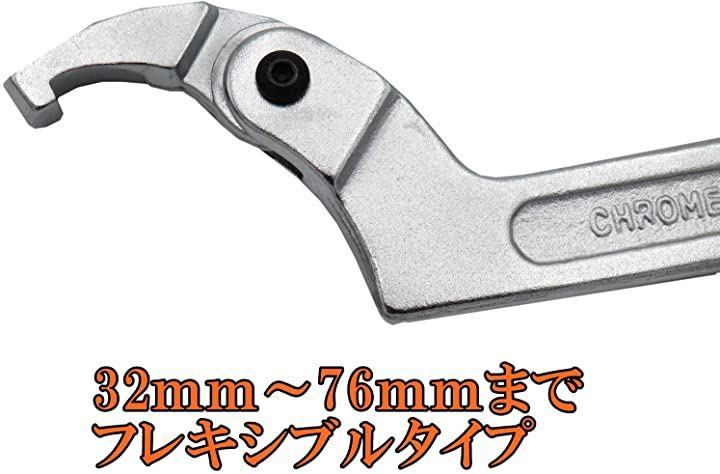 ・フックレンチはサイズフリーの32mm~76mmまでフレキシブルタイプ