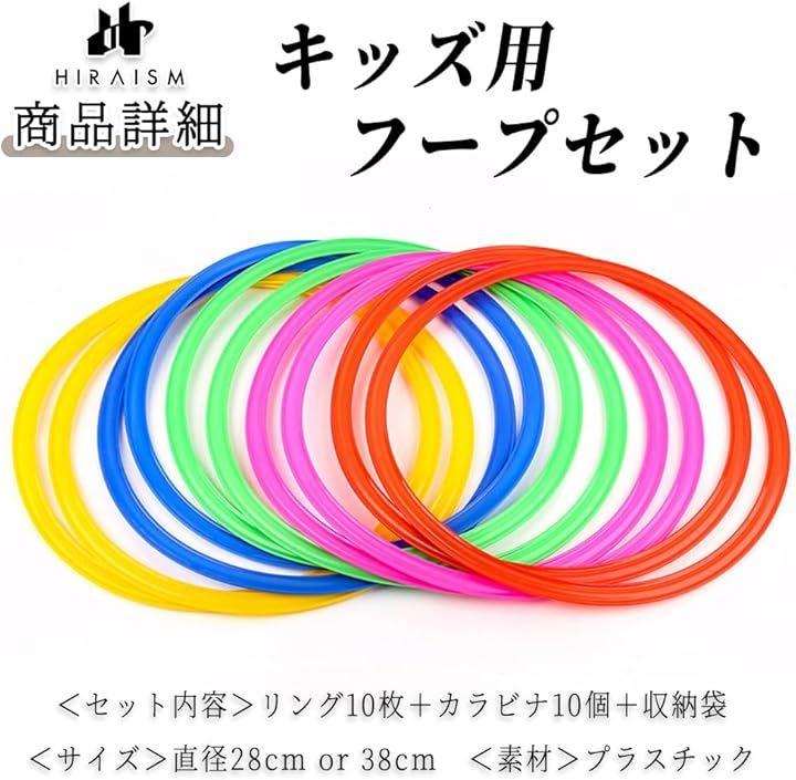 「商品内容」キッズ用フープセット <セット内容>リング10枚+カラビナ10個+収納袋 <サイズ>直径28cm or 38cm <素材>プラスチック