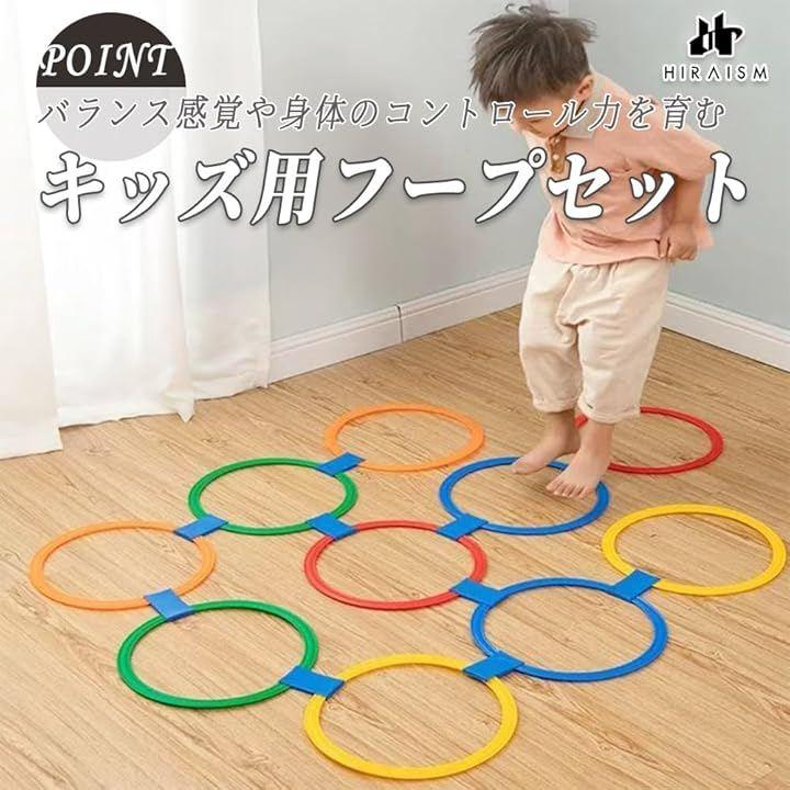 「感覚トレーニング用フープセット」ジャンプやステップを通じて、子供のバランス感覚や身体のコントロール力を育む知育・運動遊具です。