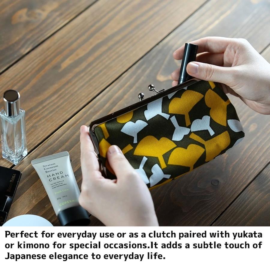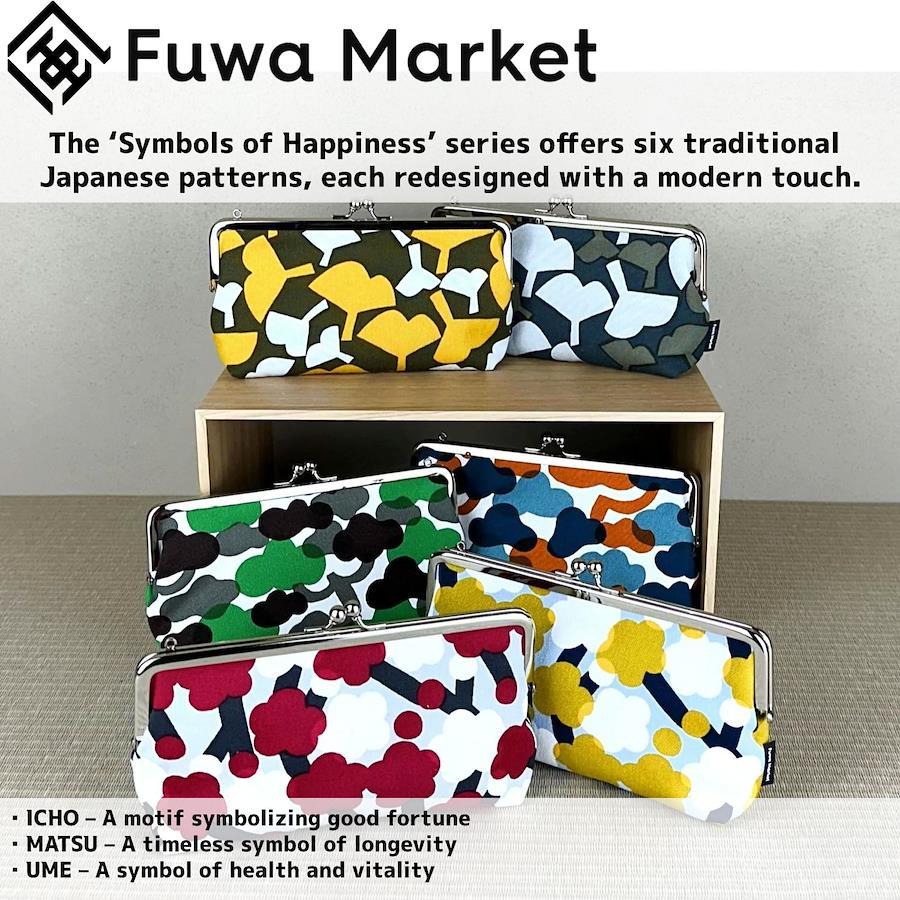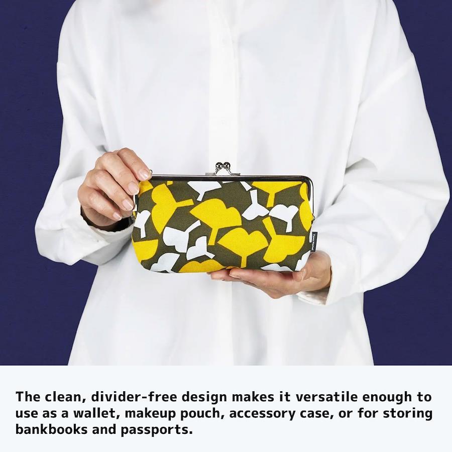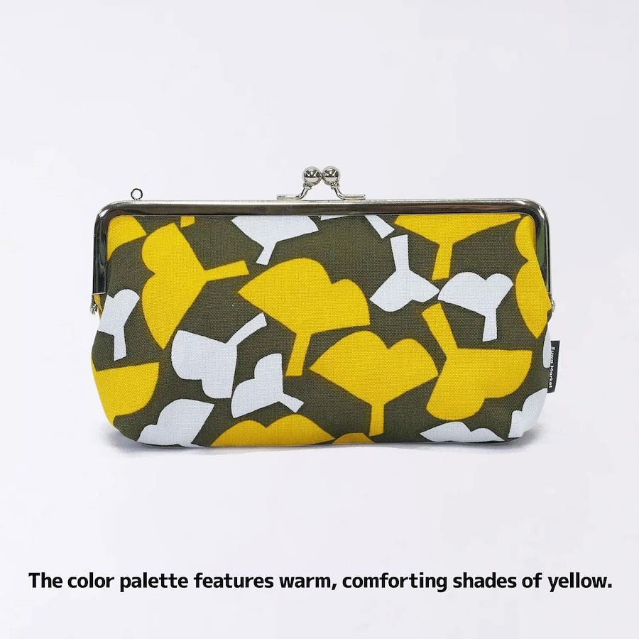 [Horizontal clasp pouch, ICHO pattern, Happiness Pattern Series] Hand-dyed canvas, FUJIKINBAI, Made in Japan, Finished by Kyoto artisans, Fuwa Market Original