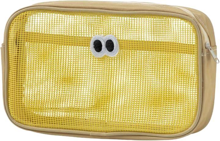 Horizontal mesh pouch with embroidered eyeball design, lightweight, perfect for storing cosmetics and makeup, perfect for travel or everyday use.