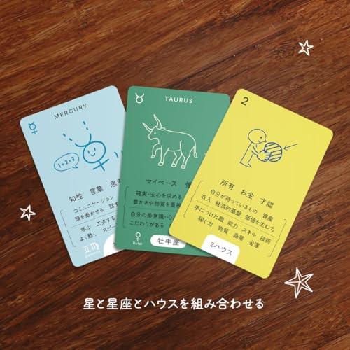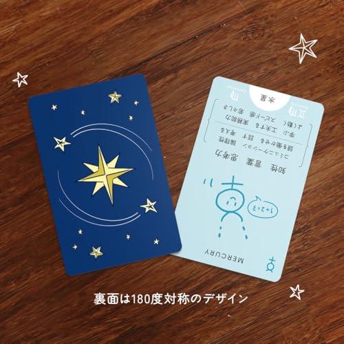 【西洋占星術の基本を1セットに】太陽や月、惑星、星座、ハウス、アスペクトなど、西洋占星術の基本要素を54枚のカードに凝縮。シンプルなイラストとキーワードで、直感的に「星を読む感覚」が身につきます。 【学習・実践・占いに】初心者の学習用から上級者のインスピレーションツールまで、多様な使い方が可能。ホロスコープの理解を深める参考資料としても、オラクルカードとしても活用できます。 【視覚で楽しむ星占い】イラストとキーワードの組み合わせで、占星術の概念をわかりやすく表現。星や星座の意味を楽しく学びながら、自由な発想でリーディングができます。 【オラクルカードとしても活躍】「今日の運勢は?」そんな時に、1枚引くだけで星々のメッセージを受け取ることが可能。直感を刺激し、インスピレーションを広げる新しい占いツールです。 【コンパクトで持ち運びも便利】手のひらサイズのカード(89×58mm)と透明ケース付きで、どこでも気軽に占いが楽しめます。 【ギフトにもおすすめ】占星術が好きな方へのプレゼントにも最適。学習用・占い用どちらの用途でも、占星術ファンに喜ばれるアイテムです。