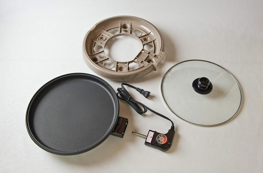 3営業日以内に発送≪新品未開封品≫:温度調節ダイヤル式のホットプレートです。電源:AC100V、消費電力:1200W、コードの長さ:約1.4m、重量:2.0kg外形寸法:(約)幅32.7×奥行40.0×高さ14.5cm、プレートサイズ:(約)内径28×深さ2cm(外径30cm)材質:本体ケース=ポリプロピレン、プレート=アルミニウム(フッ素樹脂加工)、蓋=強化ガラス