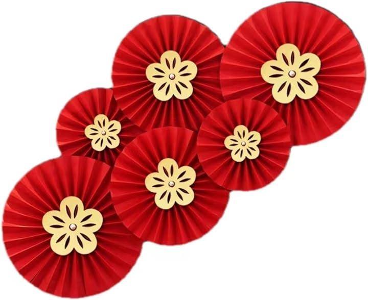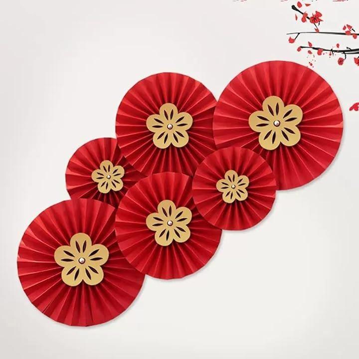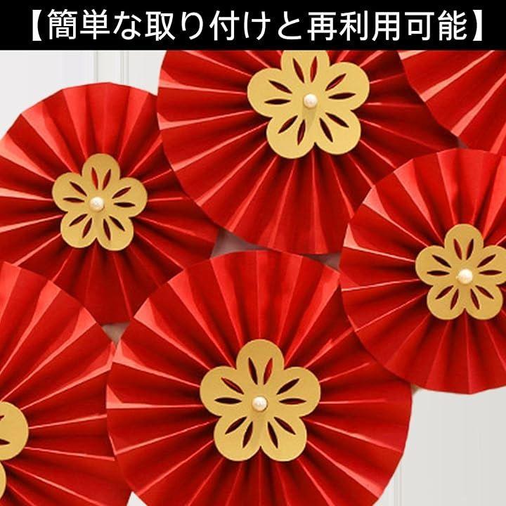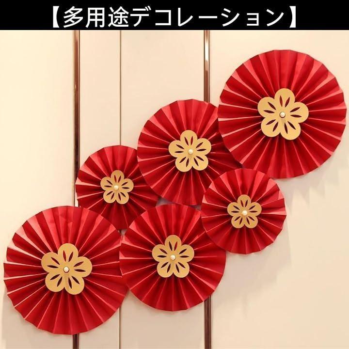 「和風梅の花デザイン」このペーパーファンは、伝統的な和風の梅の花デザインが特徴で、視覚的に魅力的であり、赤と金のカラーパレットが特別な日をさらに引き立てます。