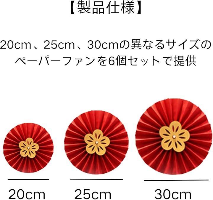 「異なるサイズと立体感」20cm、25cm、30cmの異なるサイズのペーパーファンを6個セットで提供。