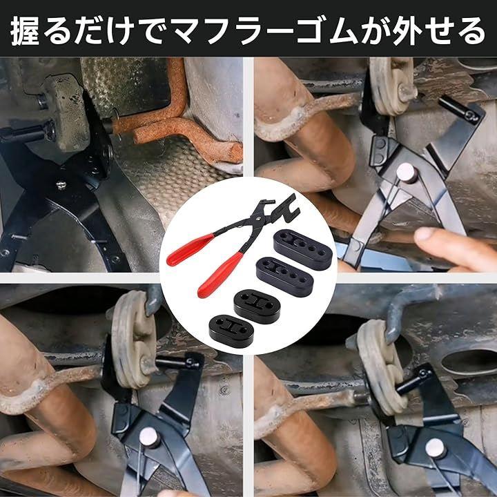 誰でも簡単。握るだけでマフラーゴムが外せる マフラーハンガープライヤーは、吊りゴムを挟んで握るだけの簡単操作。