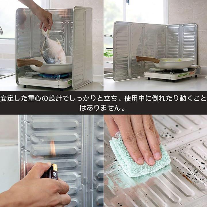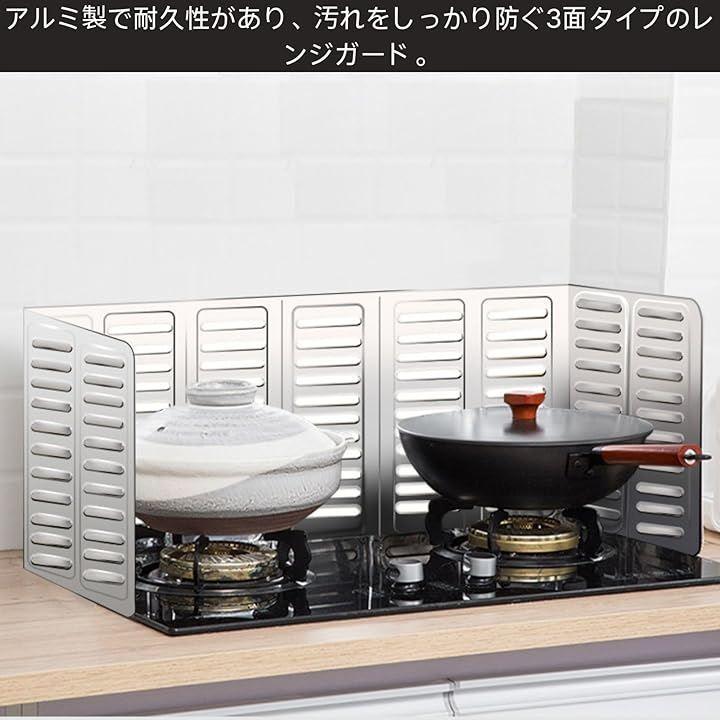 アルミ製で耐久性があり、汚れをしっかり防ぐ3面タイプのレンジガード。