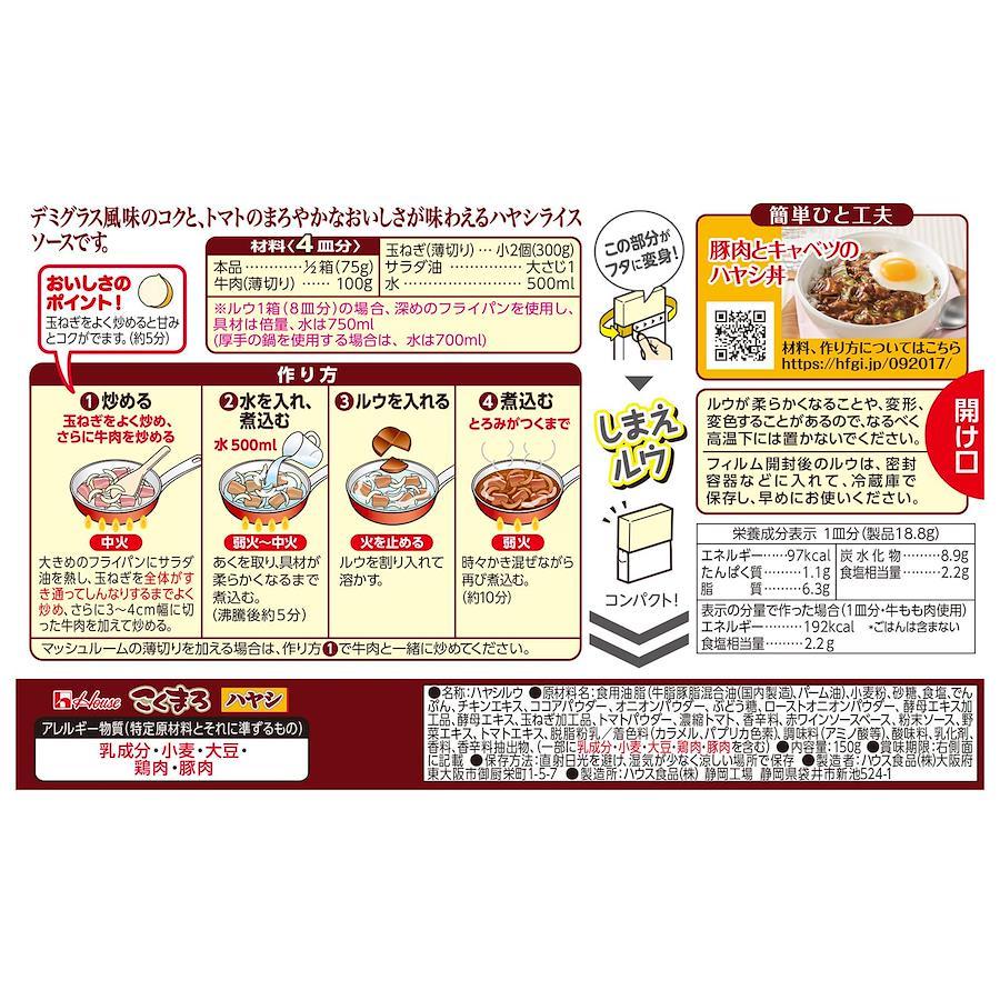 この「ハウス こくまろハヤシ 150g」は、デミグラス風味のコクと、トマトのまろやかなおいしさが味わえるハヤシライスソースです。デミグラス風味の濃厚な味わいと、ぎゅっと濃縮したトマトのうまみが感じられる、コクがあってまろやかなハヤシライスソースになっております。