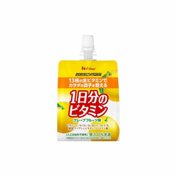 栄養素等表示基準値(2015)に基づき、ビタミン全13種類を配合。1日分のビタミン全13種類を1袋で手軽に補給することができる。人工甘味料不使用で果実らしいまろやかなグレープフルーツ味。(果汁10%未満)小腹満たしに最適なゼリー飲料180g。