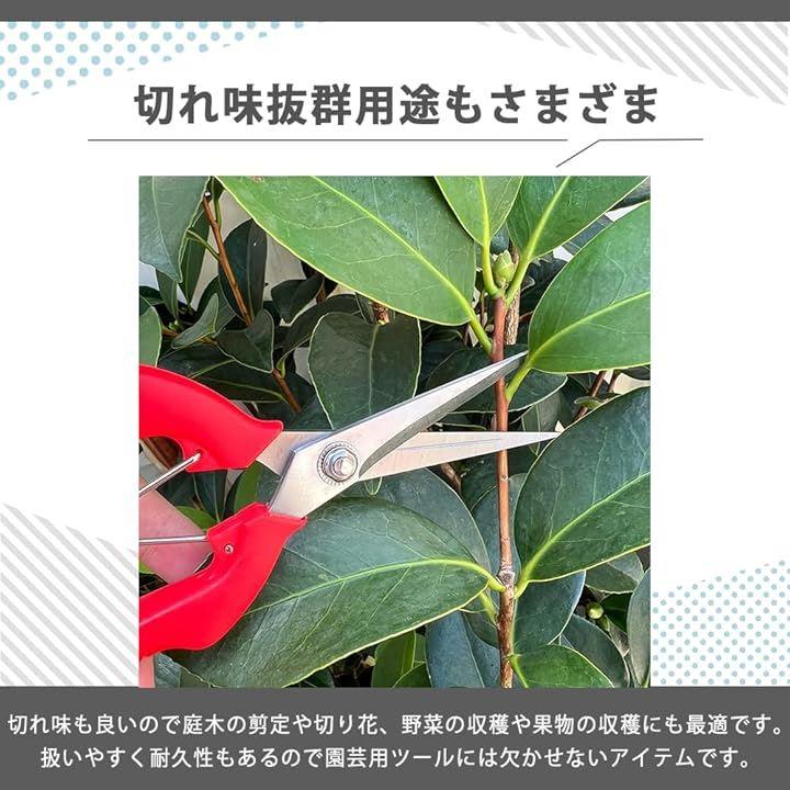 「切れ味抜群用途もさまざま」切れ味も良いので庭木の剪定や切り花、野菜の収穫や果物の収穫にも最適です。