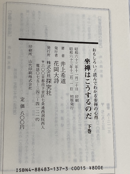 ■商品詳細■ 商品名・座禅はこうするのだ 下巻: おもしろい読んでわかる参禅の心得 探究社 井上 希道/ ■商品状態■裸本(カバー無し)。表紙にスレ、ヤケ、シミ、傷み、天地小口に多少のスレ、ヤケ、キズ、シミ、本に多少のスレ、ヤケ、のど割れ、があります。本を読むことに支障はございません。※注意事項※■毎商品チェック後出品しておりますが、中古品ということもあり、多少の書き込み等のチェック漏れがあった際はご容赦下さい。■付録等の付属品がある商品の場合、記載されていない物は『付属なし』とご理解下さい。■併売販売をしているため、在庫切れの場合はキャンセルとなります。予めご了承ください。