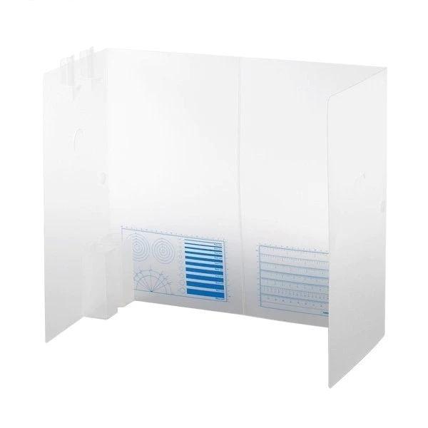 WAVE HT-073 ホビーツール モデリングシールド 模型作りに便利な卓上タイプの折りたたみ式パーテンション!置くだけで手軽にパーソナルスペースを確保。パーツの切り出し時に飛びがちな切りくずや、パーツ自体の飛散防止に役立ちます。本体正面に作業の目安になるガイドラインと目盛を印刷。側面2種類のフックには使用頻度の高いランナーを吊り下げたり、マスクなどの軽いものを吊り下げておいたりするのに便利です。製品本体は丈夫なポリプロピレン製。手元が暗くなりづらい半透明素材。本体上部に引っ掛けられる折りたたみ式のフックと、組み立て式のペン立てが付属。【付属品】折りたたみ式フック×2、組み立て式ペン立て×2、丸型面ファスナー×6組コの字型展開時:幅51×高さ45×奥行25(cm)折りたたみ時:幅25×縦45(cm)本体板厚:1mm素材:PP