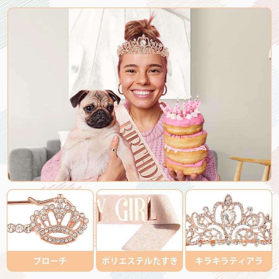 「誕生日祝い3点セット」文字「BIRTHDAY GIRL」(「誕生日ガール」)付きティアラ、たすき、キラキラブローチの3点誕生日お祝い用セットです。優雅&高級感溢れているこのバースデーセットをつけて、楽しい誕生日パーティーを過ごしましょう!