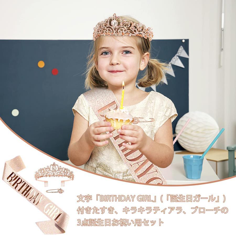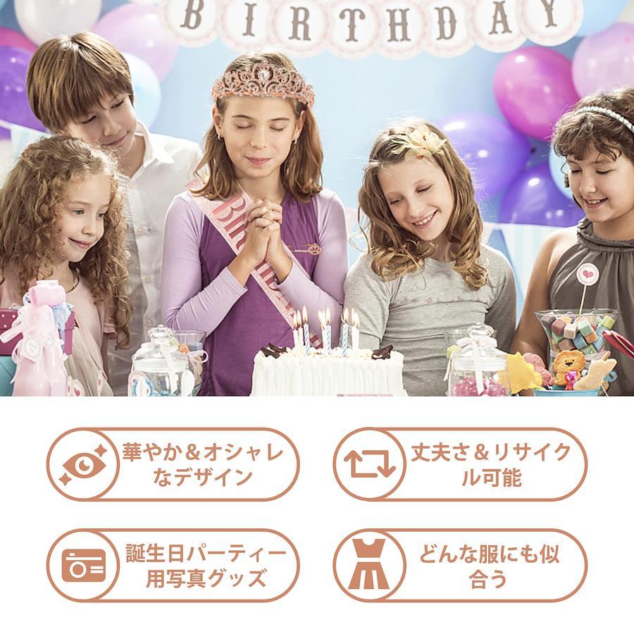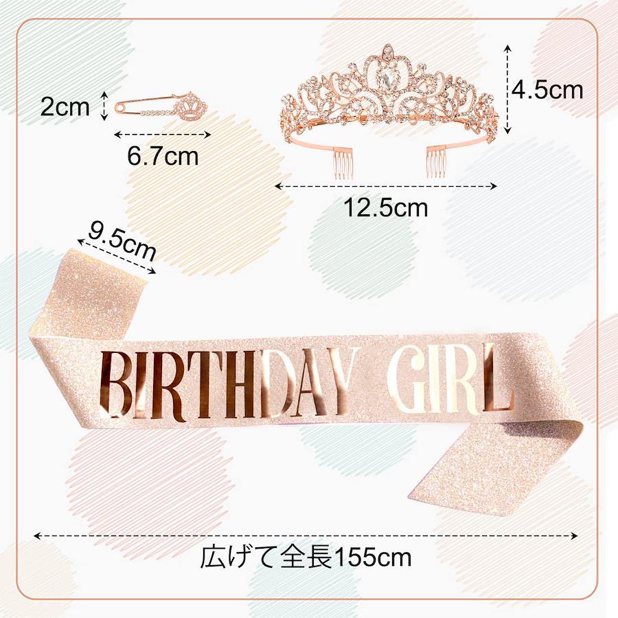 「誕生日祝い3点セット」文字「BIRTHDAY GIRL」(「誕生日ガール」)付きティアラ、たすき、キラキラブローチの3点誕生日お祝い用セットです。優雅&高級感溢れているこのバースデーセットをつけて、楽しい誕生日パーティーを過ごしましょう!「おしゃれなティアラ」紙質のパーティーハットの代用として、オシャレと高級感だけではなく、バースデーテーマに合わせやすく、サイズもコンパクトで邪魔になりません。「文字付きたすき」たすきの生地は柔らかく、ちょうど良いサイズになっており、大人でも子どもでも使えます。虹色の文字はカラフルでおしゃれ、誕生日パーティーのシーンに最適です。「キラキラブローチ」キラキララインストーンで飾っているブローチも付属しております。王冠デザインはとてもオシャレに見え、メッキもしっかりしていて、パーティー以外の場合でつけてもかわいいアクセサリーになります。【免責事項】メーカーによる商品リニューアルに伴いパッケージ(内容量も含む)変更が行われた場合、新パッケージでお届け致します事ご了承願います。