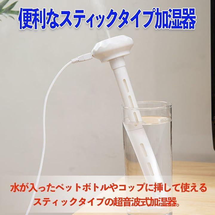 「便利なスティックタイプ加湿器」水が入ったペットボトルやコップに挿して使えるスティックタイプの超音波式加湿器。