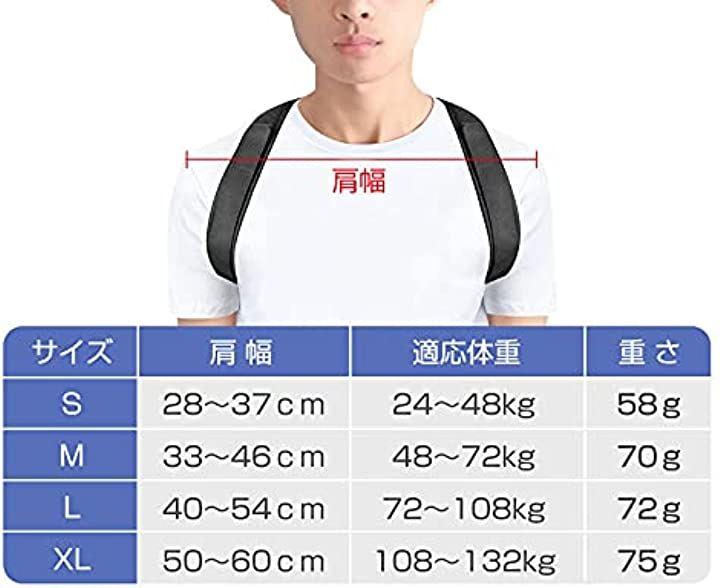 ・vSサイズ:肩幅28~37cm、適応体重24~48kg、重さ58g Mサイズ:肩幅33~46cm、適応体重48~72kg、重さ70g Lサイズ:肩幅40~54cm、適応体重72~108kg、重さ72g XLサイズ:肩幅50~60cm、適応体重108~132kg、重さ75g