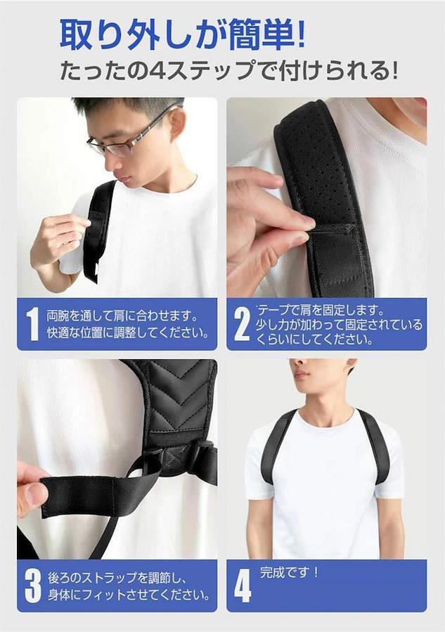 ・v取り外し簡単。たったの4ステップ 1.両腕を通して肩に合わせます。