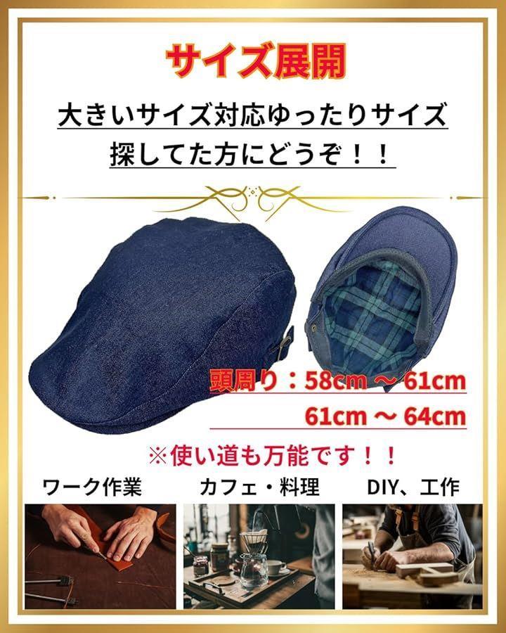 サイズ:頭周り約61cm(サイドベルトでお好みのフィット感に調整可能)つば約5.5cm、高さ約9.5cm