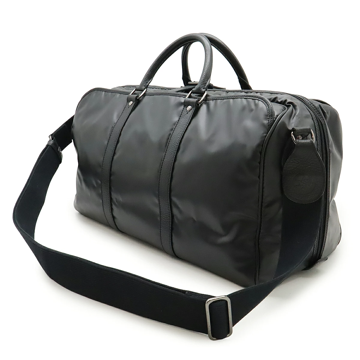 HUNTING WORLD Boston Bag, Travel Bag, 2-Way Shoulder Bag, Coated Nylon and Leather, Black [Pre-owned]