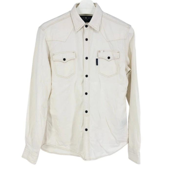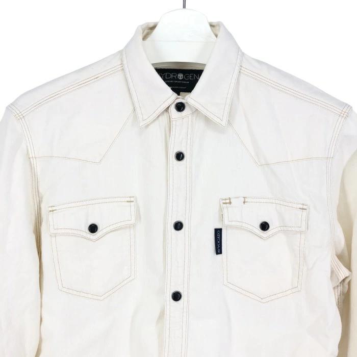 HYDROGEN Work Shirt, Long Sleeve, Cotton, Off-White, Size M (approx.), Used, Men's