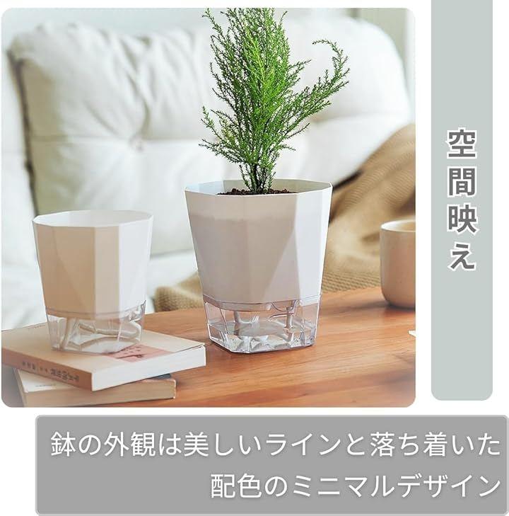 「空間映え」鉢の外観は美しいラインと落ち着いた配色が、植物の緑と調和するミニマルデザイン。