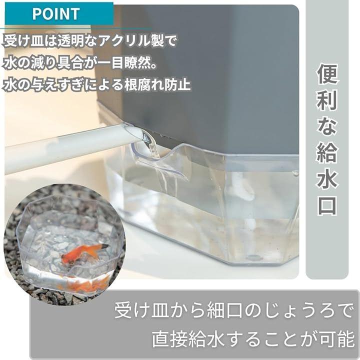 受け皿には給水口が付いているので、細口のじょうろで直接給水することが可能で手間がかかりません。