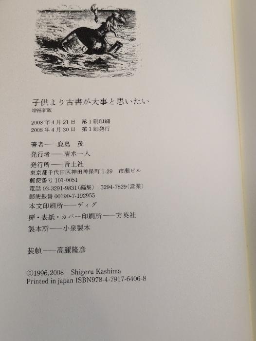 b02-251229003005015-000子供より古書が大事と思いたい 増補新版 青土社 鹿島 茂買うも地獄、買わぬも地獄。達意の文章で綴る、洋古書の魅力とコレクション地獄の恐怖。「パリ 古書店あんない」 を増補、古書の匂いさらに色濃く、待望の新版!【第12回 講談社エッセイ賞受賞】9784791764068<%% SHIPPING %%>表紙に若干の通常使用による擦れがあります。本は良好な状態です。※注意事項※■商品・状態はコンディションガイドラインに基づき、判断・出品されております。■付録等の付属品がある商品の場合、記載されていない物は『付属なし』とご理解下さい。