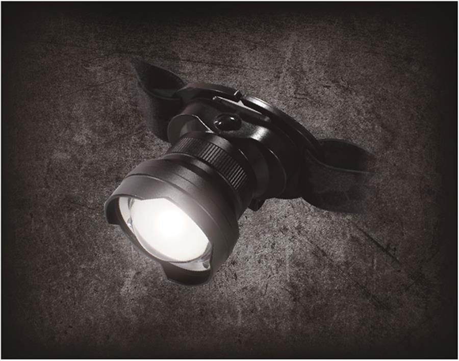 照射エリア切替可能で、遠方から近接まで照射エリアを選ばない。点灯モード切替機能付で用途に応じて切替できる。最大280ルーメンの高出力タイプのLEDヘッドライト。使用電源:単三形アルカリ乾電池×3本光源:Cree XPE-R5×1個明るさ:強/約280ルーメン、弱/約1200ルーメン点灯時間:強/約6.5時間、弱/約11.5時間照射特性:スポット、ワイド防水性能:IPX4使用環境温度:-5~40度付属品:ポリシリコンバンド×1、単三形乾電池×3別売バッテリー:87691充電バッテリー使用可能