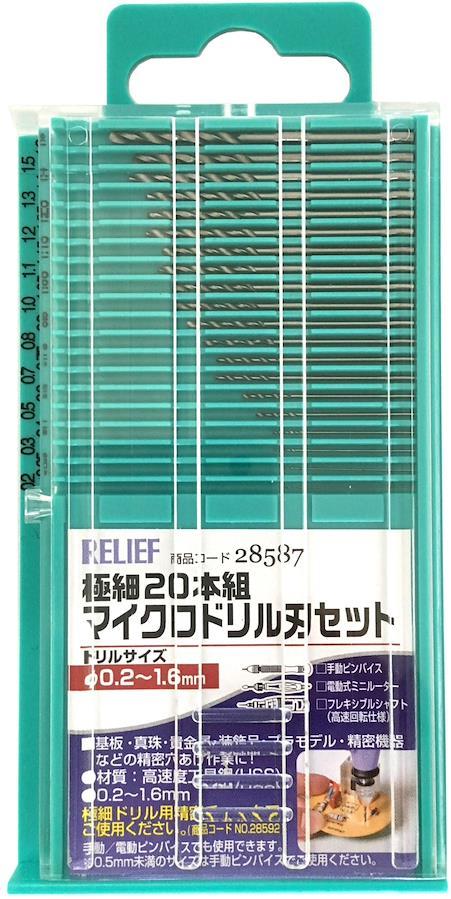 3営業日以内に発送≪新品未開封品≫:イチネンアクセス(旧イチネンミツトモ) RELIEF(リリーフ) 鉄工ドリル 20本組 極細マイクロドリル刃セット 28587 0.2~1.6mmサイズ: 直径0.2~1.6mm、スタイル: 20本組