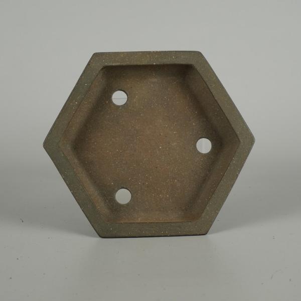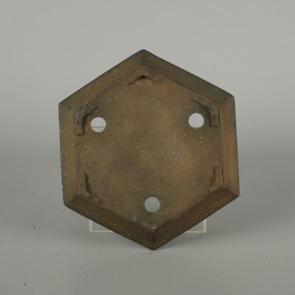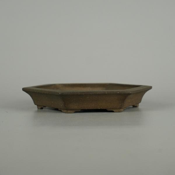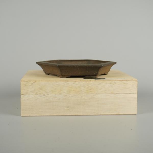 Ichinokura Sekishu bonsai pot, small, approximately 15cm long, hexagonal, with rim, clay finish, box included, brand new