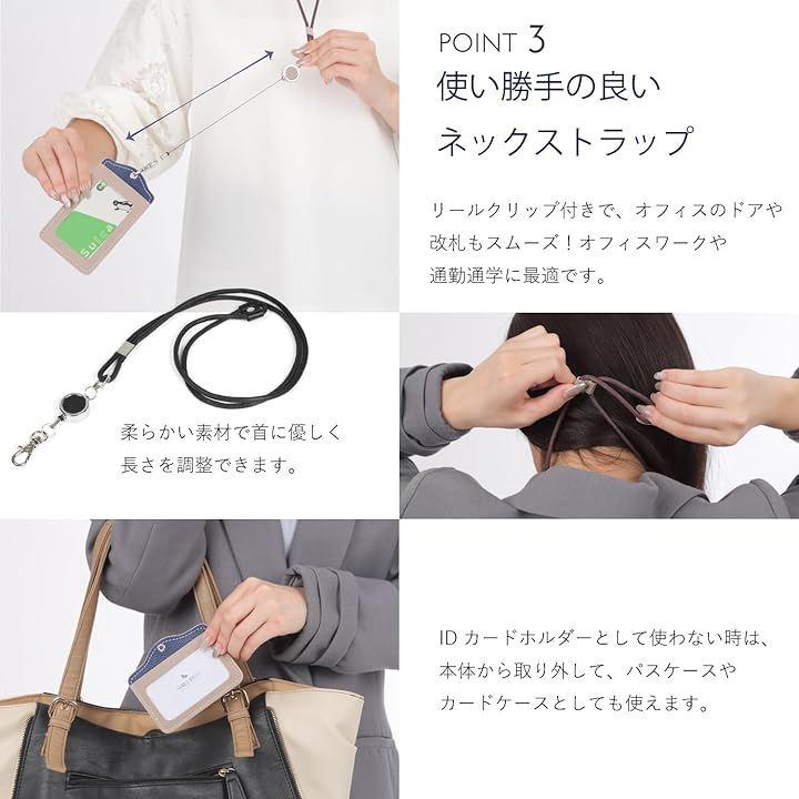 「使い勝手の良いネックストラップ」IDカードホルダーとして使わない時は、本体から取り外して、パスケースやカードケースとしても使えます。