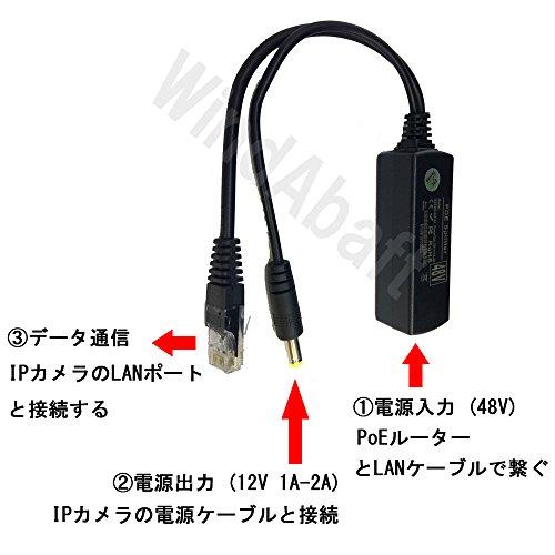 【PoE非対応IPカメラをPoE化できる!】 IEEE802.3af PoE スプリッター PoE非対応のIPカメラをLANケーブル1本(Cat5e以上)で接続・延長可能! PoEルーターと接続できる! (LANケーブルは別売)入力電圧: 44V-57V (PoEルーターの規格)、 出力: 12V 1A、 対応カメラ規格: IPカメラ 電圧12V、1A以下 ※※PTZカメラ12V1A以上の消費電力のタイプは、距離によって電圧降下しPTZカメラの要求電力を満たせなくなることがあるため、利用前にテスト接続し確認後に使用してください映像端子形状: RJ45 LANプラグ(オス)、 DC端子形状: DCプラグ (外径5.5mm-内径2.1mmの一般的に多いDCサイズ)対応LANケーブル規格: CAT5e以上、 影像伝送距離100m(最大)、データ転送速度: 10/100 Mbps規格: IEEE 802.3 at、IEEE 802.3 af、電圧はLANケーブルの長さに応じて電圧降下します。(取付前にLANケーブル両端に本品を取り付け動作確認してください)