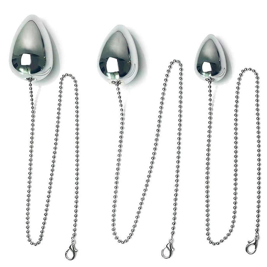 Ifukens アナルビーズアナル拡張アナル開発アナルプラグ ステンレスアナルボール 卵型アナルパール極太 アナルディルド ロングチェーンがアナル産卵プレイアナル おもちゃアナル調教アナルグッズあなる拡張器具 上級者あなるビーズ 女性用 初心者(楕円玉,3個セット)
