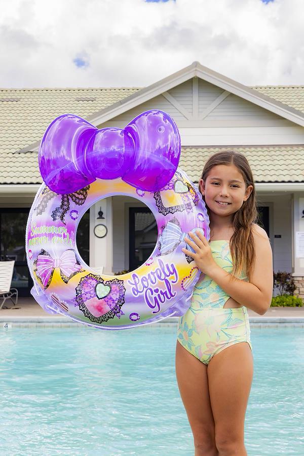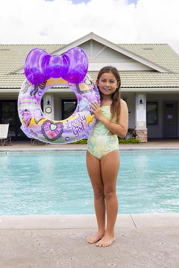 対象年齢8歳~14歳くらいのお子様に最適!。膨らんだ状態のウキワの内周は約95~100cmです。ロープ付き。