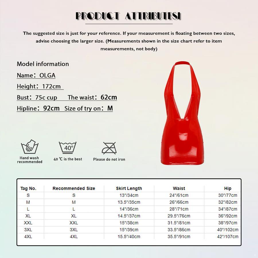 パターン 無地肌に優しい柔らかいパテントレザーで作られており、臭いがなく、老化しにくく、高品質の生地が通気性と快適な着用感を保証します。ボディコンドレスは、ホルターネック、深いVネック、バックレス、バックジッパー開閉のミニ着丈スカートでデザインされた、素晴らしいドレスです。パテントレザーは濡れたような光沢感があり、肌のトーンをうまく調整します。バックファスナー開閉で着脱も便利です。誇張されたVネック、バックレス、スキニーミニスカートが砂時計の体型を強調し、あらゆる角度からあなたの魅力を示します。ハロウィーン、ナイトクラブ、コスプレ、ジャズダンス、ディスコ、仮面舞踏会、恋人とのロマンチックな夜、記念日、カーニバルなどに最適です。(#lf)(#lf)(#lf)商品購入前に、ストア紹介ページをご確認ください。
